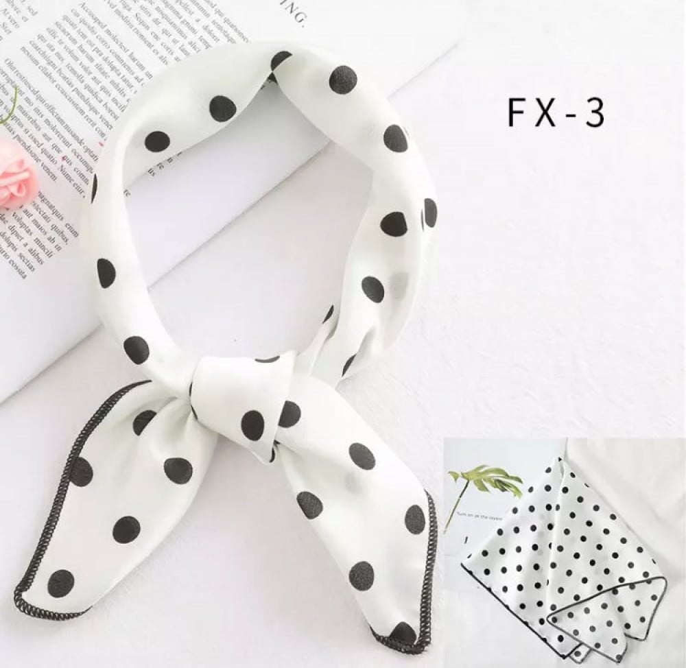 سكارف مربع ابيض منقط بالاسود حرير جوده ممتازه جدا